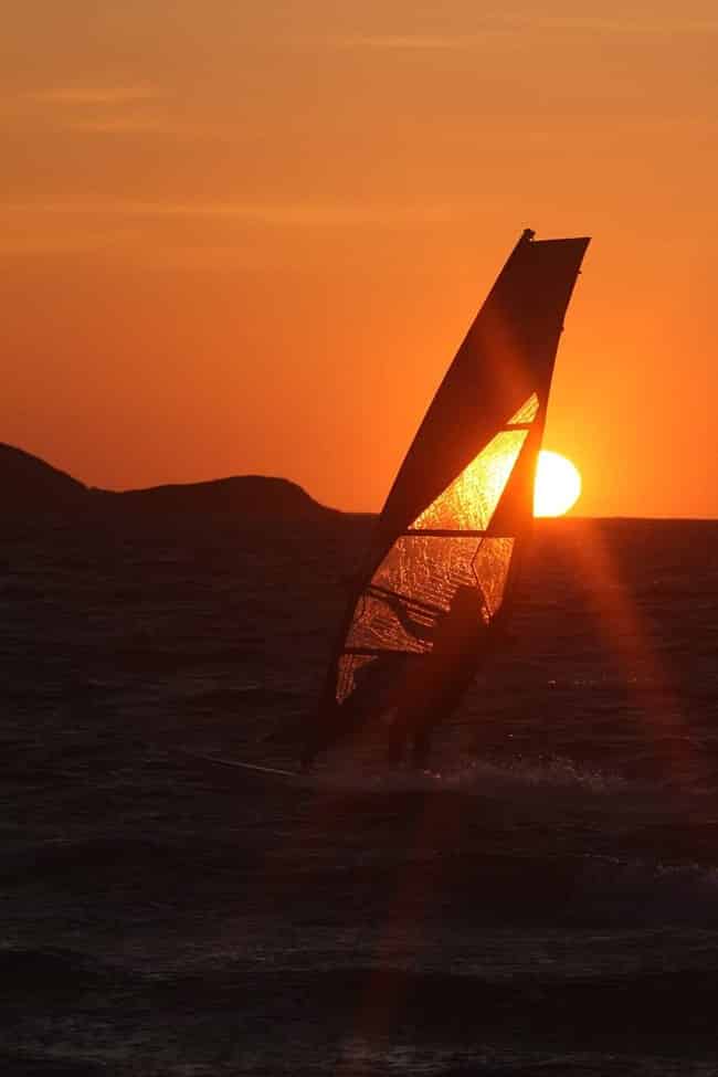 Windsurfen- bei-Sonnenuntergang-Almanarre-Beach-Lodges-La-Guyanne