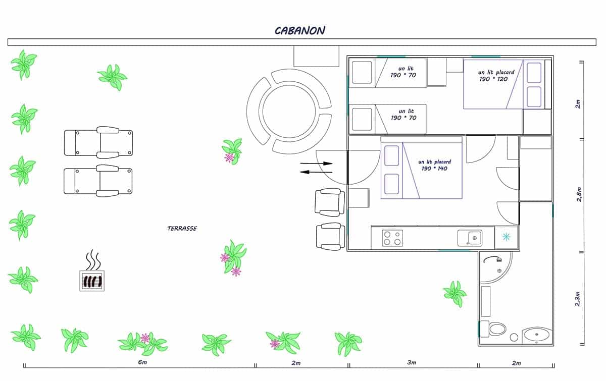 Plan de travail de la cuisine du gîte « LE CABANON » – LA GUYANNE GIENS